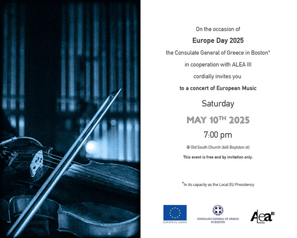 On the occasion of Europe Day 2025, the consulate General of Greece in Boston, in its capacity as the Local EU Presidency and in cooperation with ALEA III, hosts the Annual Europe Day concert.
